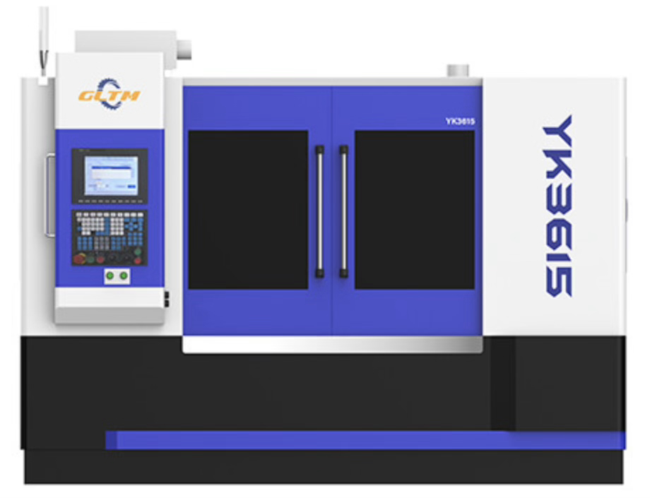 Серия YK3615 - это зубофрезерные станки с ЧПУ с 6-осямя/ 6 осей ЧПУ включают в себя: A - поворот кронштейна фрезерной головки, B - вращение шпинделя фрезерной головки, C - вращение рабочего стола, X - радиальную подачу, Y - тангенциальную подачу, Z - ось подачи. Каждая ось перемещения станка с ЧПУ приводится в движение независимым двигателем, а для реализации движения индексации используется "электронный редуктор (EGB)", а дифференциальная компенсация выполняется для обработки различных зубчатых деталей методом генерации.